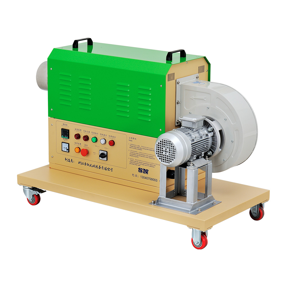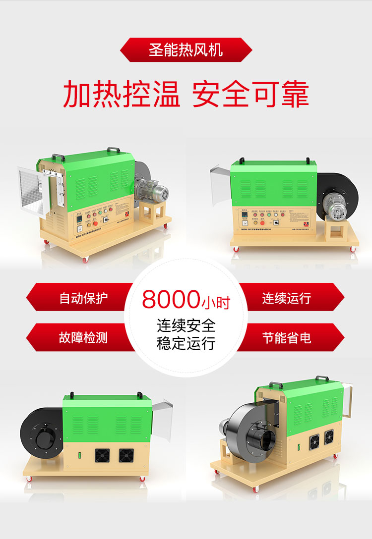 風(fēng)量型熱風(fēng)機(jī)主要由空氣加熱器和離心風(fēng)機(jī)組成??諝饧訜崞骷訜岙a(chǎn)熱散熱,由離心風(fēng)機(jī)將熱量輸出,從而調(diào)節(jié)空間溫度,風(fēng)量型熱風(fēng)機(jī)中加熱元件由2080鎳鉻絲加工成螺旋導(dǎo)管組成,從而發(fā)熱快、溫度效果好、工作風(fēng)量大壓力較低。根據(jù)使用場(chǎng)所可分為:家用風(fēng)量型熱風(fēng)機(jī)和農(nóng)業(yè)用風(fēng)量型熱風(fēng)機(jī)。從而家用和農(nóng)業(yè)用風(fēng)量型熱風(fēng)機(jī)需根據(jù)客戶使用情況來(lái)進(jìn)行風(fēng)機(jī)和加熱功率的配比,望請(qǐng)客戶采購(gòu)時(shí)將現(xiàn)場(chǎng)工況詳細(xì)說(shuō)明。