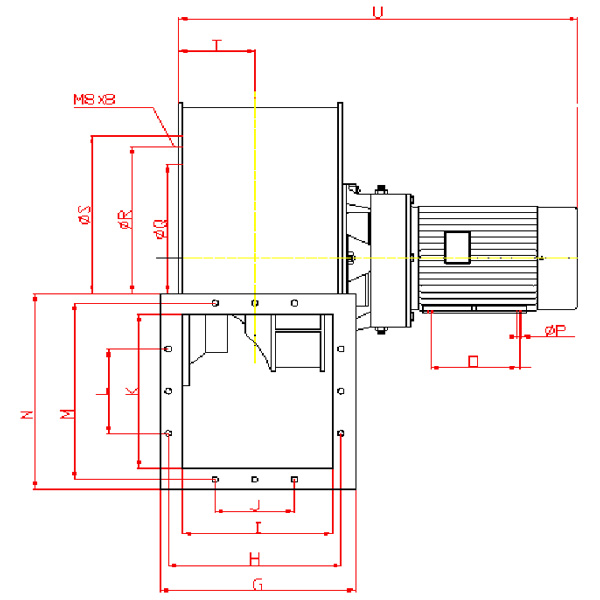 ②風機的出口位置,以機殼的出風口角度表示。風機出廠時均做成一種可調(diào)型式,使用單位根據(jù)要求在安裝成所需要的位置。出風口位置調(diào)整范圍是0°-255°,間隔是45°。傳動方式均為“A”式直聯(lián)傳動。