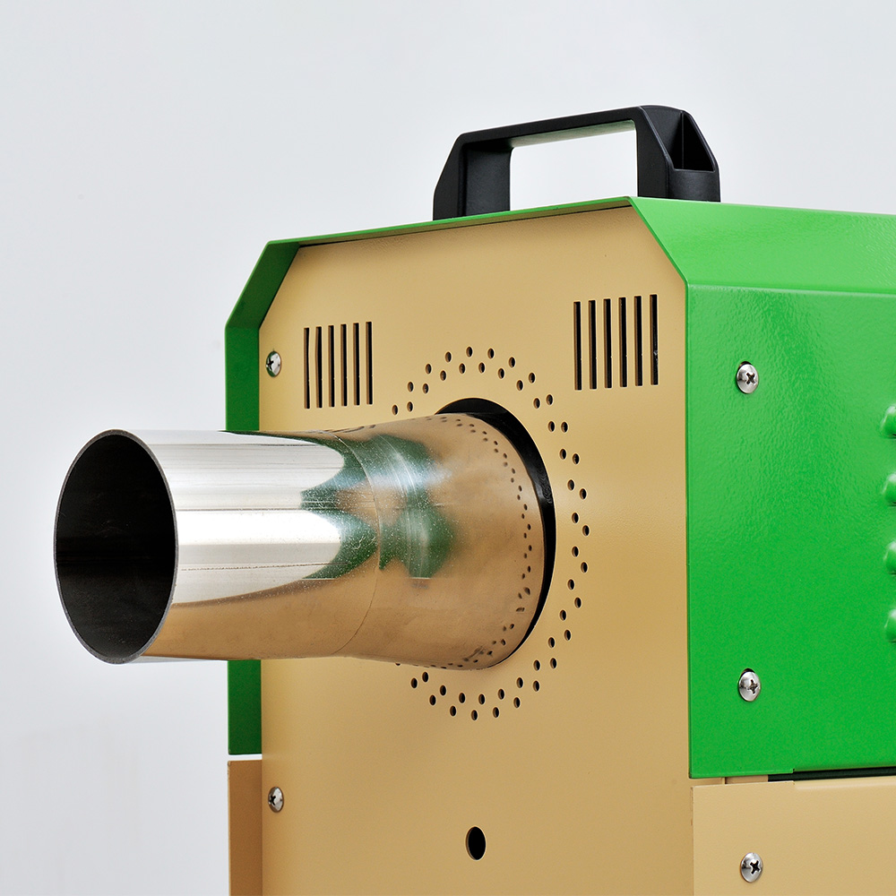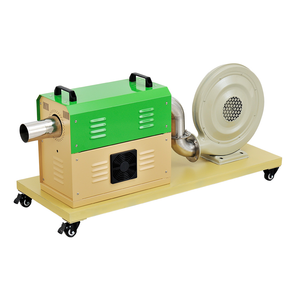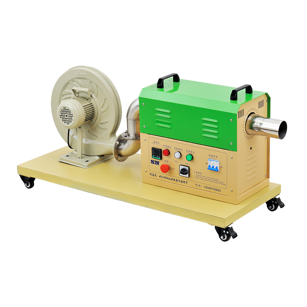 “TSN”工業(yè)熱風(fēng)機(jī)主要由送風(fēng)系統(tǒng)、加熱系統(tǒng)、溫控系統(tǒng)三大部分部分組成。通電后,鼓風(fēng)機(jī)把空氣吹送到加熱器里,令空氣從螺旋狀的電熱絲內(nèi)、外側(cè)均勻通過,電熱絲通電后產(chǎn)生的熱量與通過的冷空氣進(jìn)行熱交換,從而使出風(fēng)口的風(fēng)溫升高。出風(fēng)口處的K型熱電偶及時(shí)將探測(cè)到的出風(fēng)溫度反饋到溫控儀,儀表根據(jù)設(shè)定的溫度檢測(cè)著工作的實(shí)際溫度,并將有關(guān)信息傳遞回固態(tài)繼電器進(jìn)而控制加熱器是否工作。同時(shí),鼓風(fēng)機(jī)可利用風(fēng)量調(diào)節(jié)器(變頻器、手動(dòng))調(diào)節(jié)吹送空氣的風(fēng)量大小。另外,送風(fēng)系統(tǒng)及加熱器,均有過載超溫自動(dòng)保護(hù)裝置,總電路也設(shè)計(jì)了緊急摯,以保證安全,防止錯(cuò)誤操作。